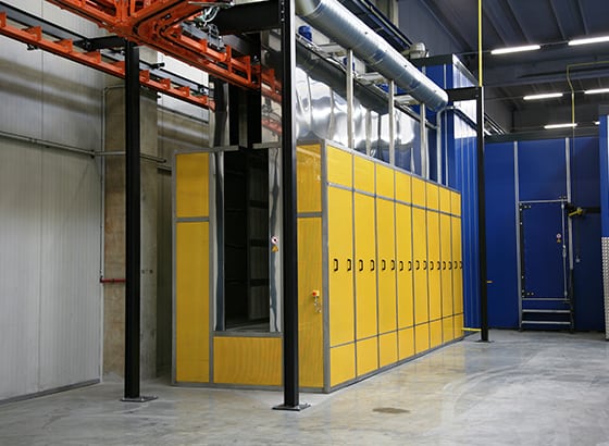In the case of a continuous oven, the product is placed in the curing oven through a conveyor system. Depending on the layout of the installation, this is an oven in line, in U-shape or in Z-shape.