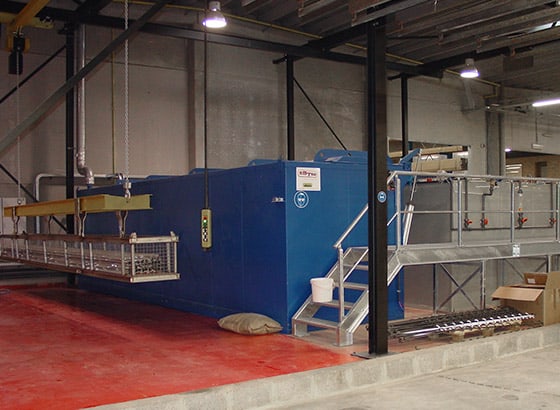 In a drying oven after dip baths, the basket of products is loaded vertically into the oven compartment via an overhead crane, after which the oven door is automatically closed. The duration of drying depends on the applied temperature and the mass and geometry of the products to be dried.